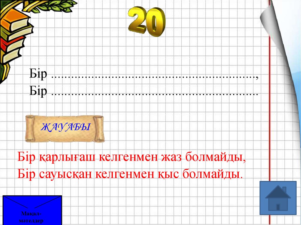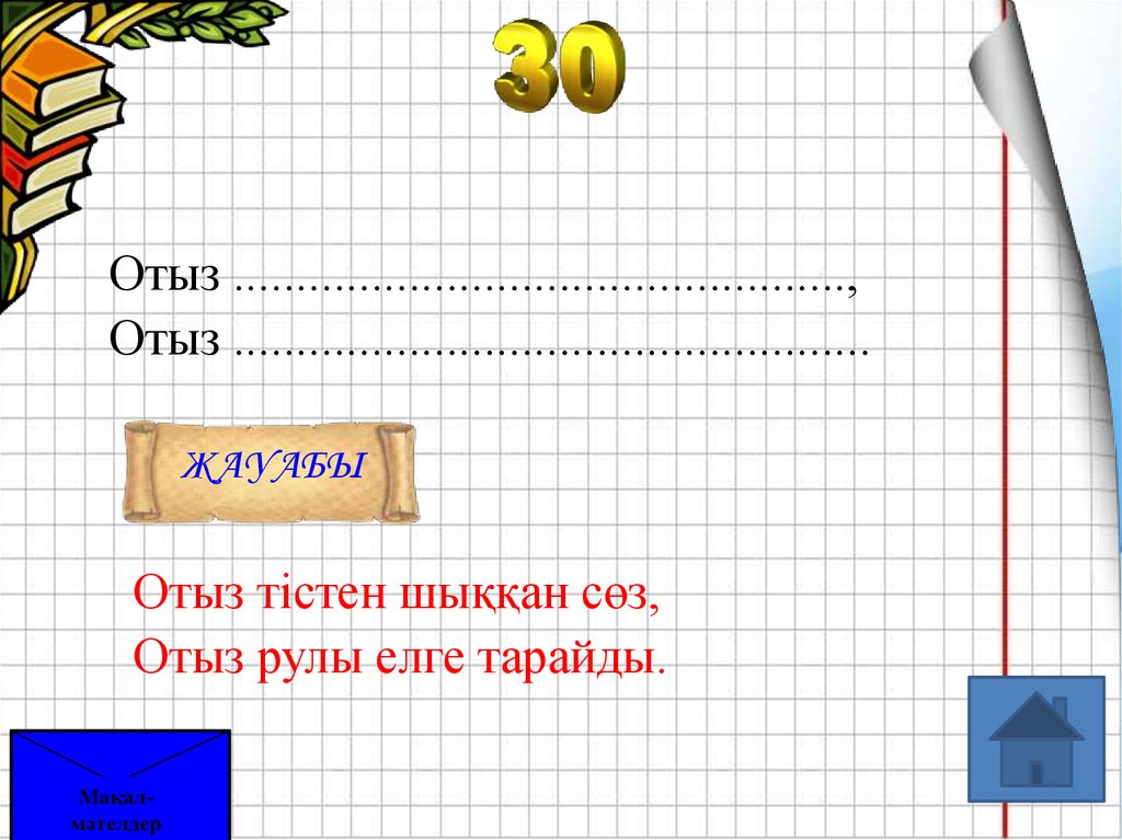 1.Жоқ өзінде бас та, қас та, мойын да,Ұзындығы жазулы тұр бойында.