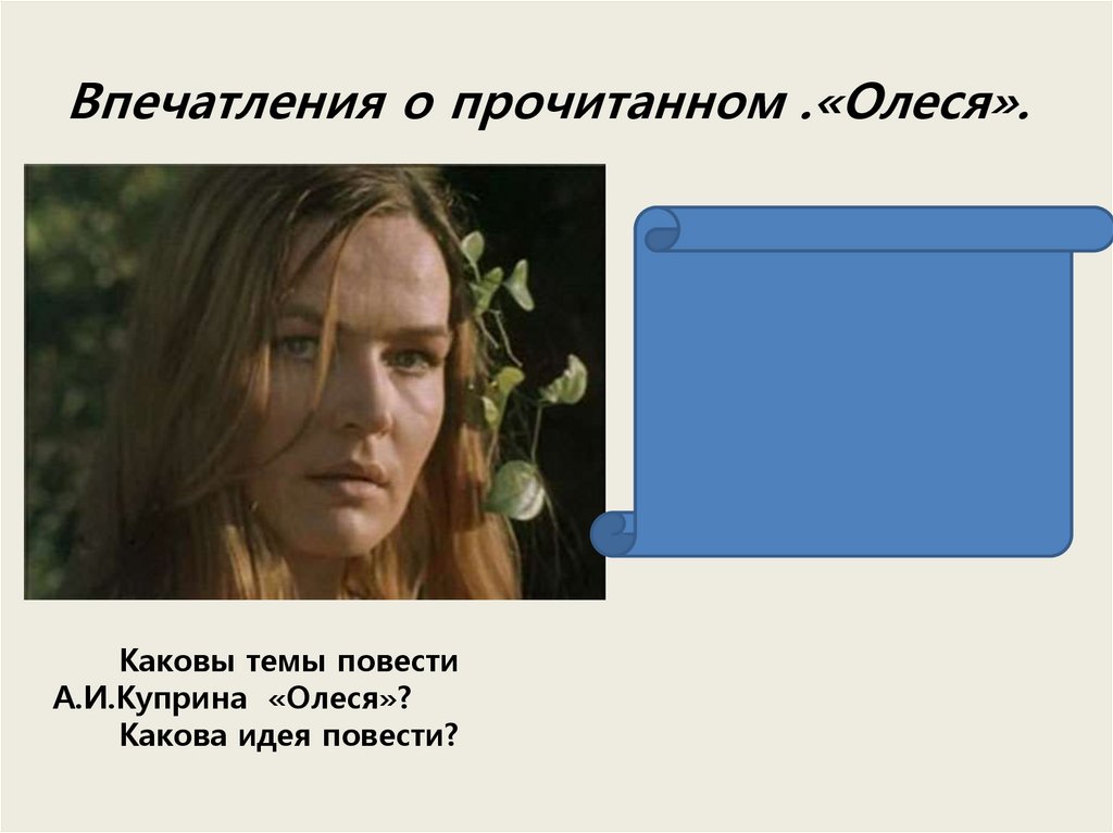 Впечатления о прочитанном .«Олеся».Тема "волшебной" любви, тема