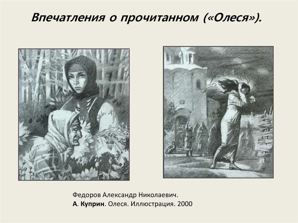 Впечатления о прочитанном («Олеся»).Федоров Александр Николаевич.