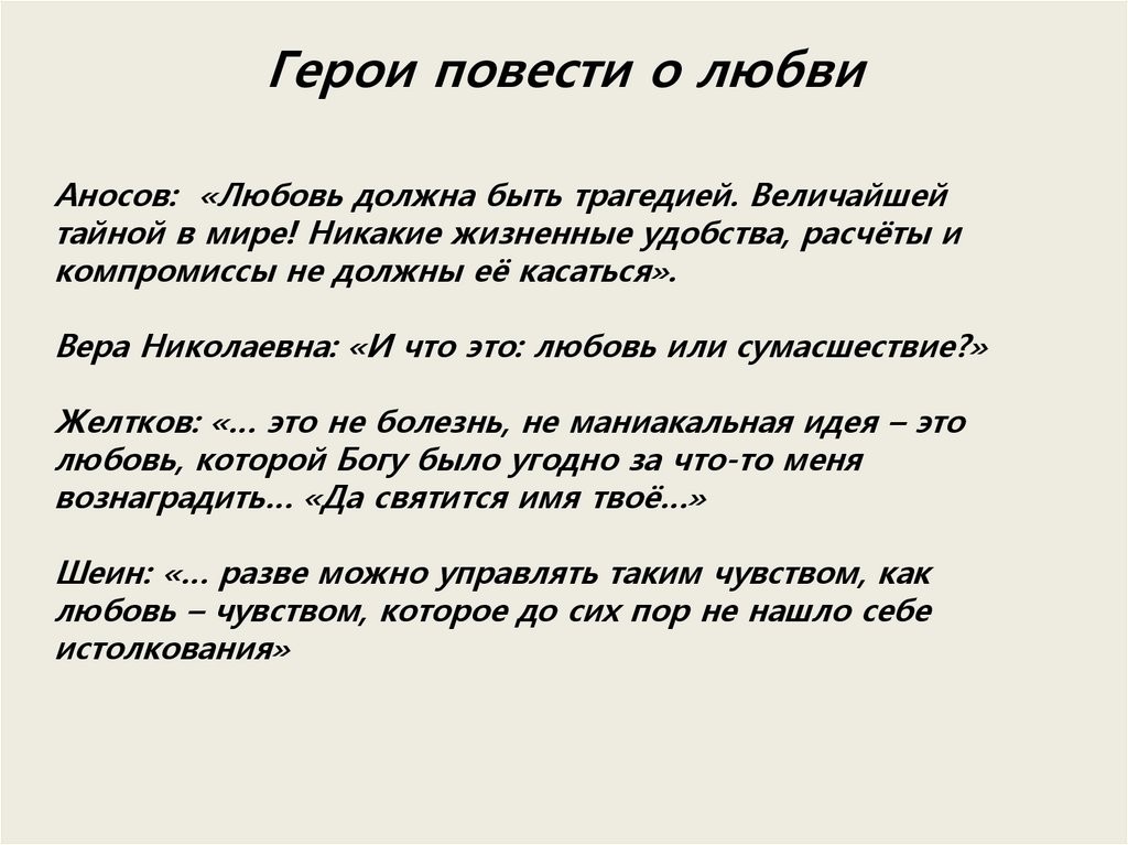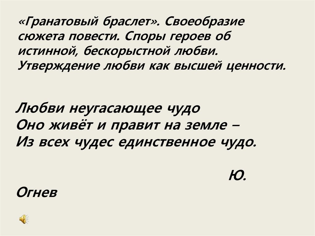 «Гранатовый браслет». Своеобразиесюжета повести. Споры героев об