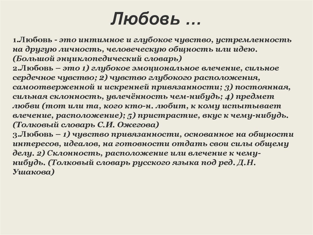 Любовь …1.Любовь - это интимное и глубокое чувство, устремленность