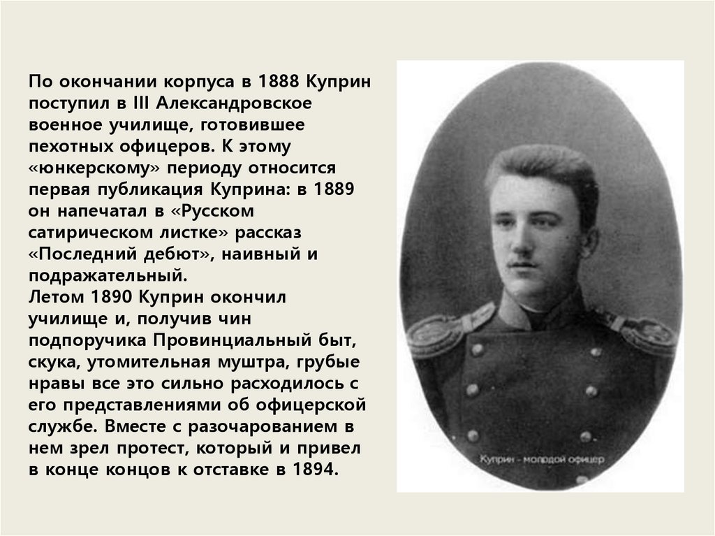 По окончании корпуса в 1888 Купринпоступил в III Александровское