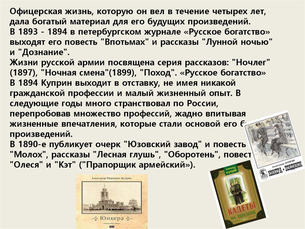Офицерская жизнь, которую он вел в течение четырех лет,дала богатый материал для его будущих произведений.