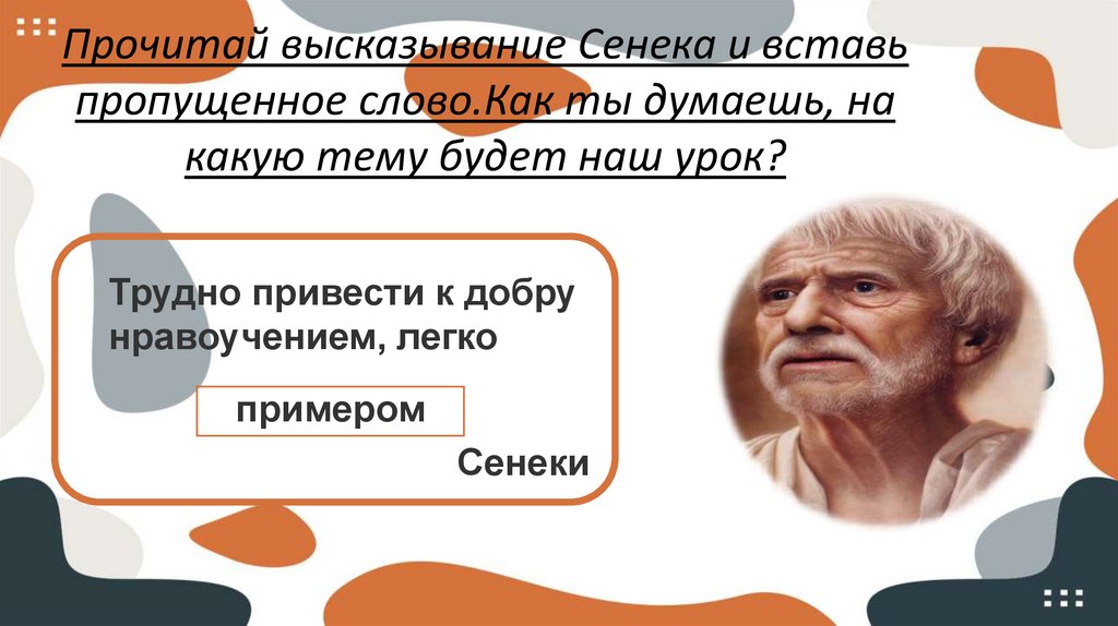 Прочитай высказывание Сенека и вставьпропущенное слово.Как ты думаешь, на
