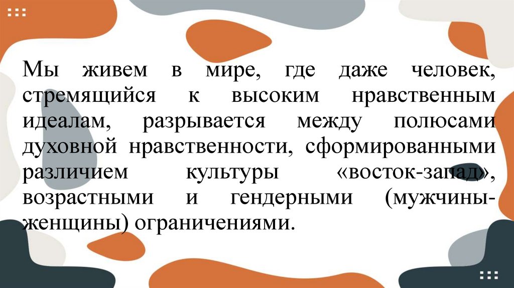 Мы живем в мире, где даже человек,стремящийся к высоким нравственным