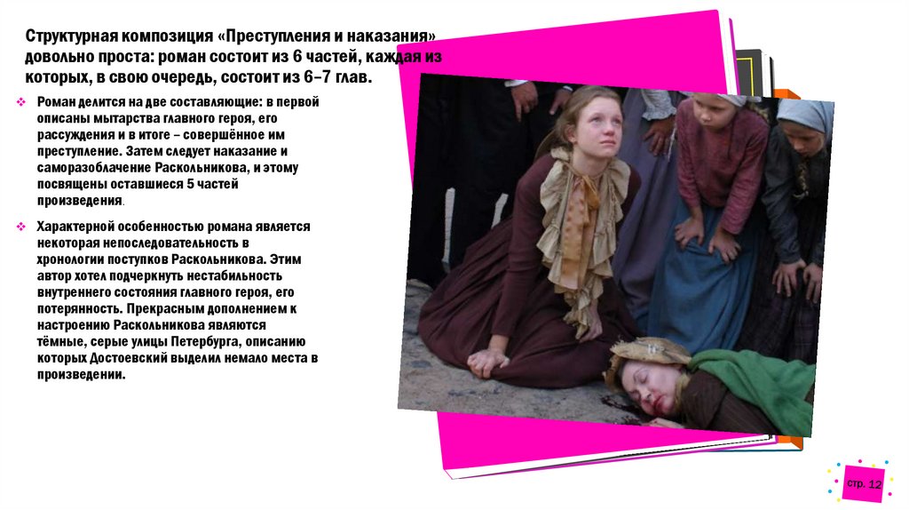 Структурная композиция «Преступления и наказания»довольно проста: роман состоит из 6 частей, каждая из