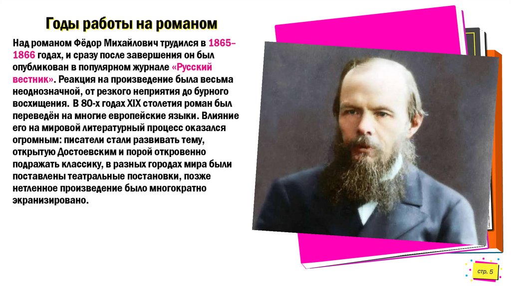 Годы работы на романомНад романом Фёдор Михайлович трудился в 1865–