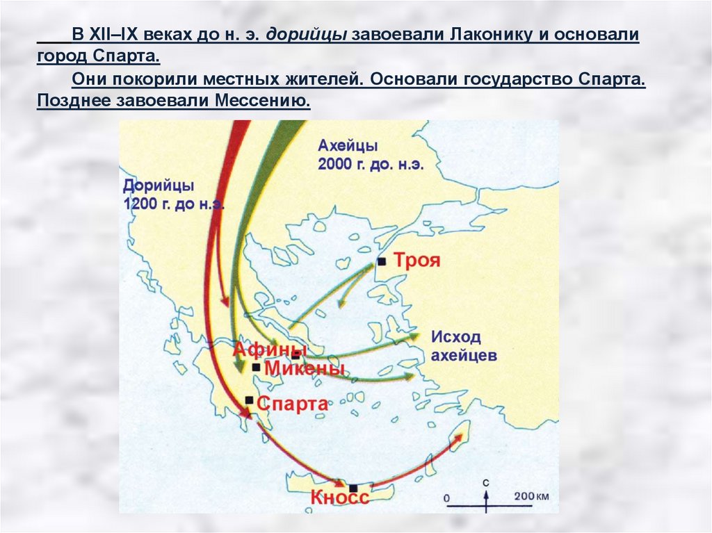 В XII–IX веках до н. э. дорийцы завоевали Лаконику и основалигород Спарта.