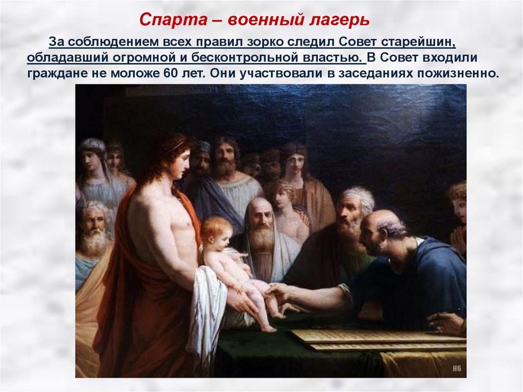 Спарта – военный лагерьЗа соблюдением всех правил зорко следил Совет старейшин,