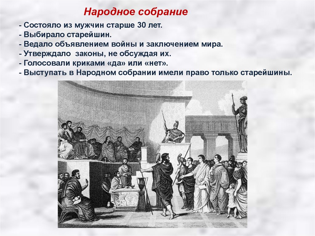 Народное собрание- Состояло из мужчин старше 30 лет.