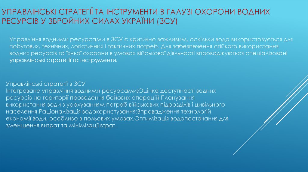 УПРАВЛІНСЬКІ СТРАТЕГІЇ ТА ІНСТРУМЕНТИ В ГАЛУЗІ ОХОРОНИ ВОДНИХРЕСУРСІВ У ЗБРОЙНИХ СИЛАХ УКРАЇНИ (ЗСУ)