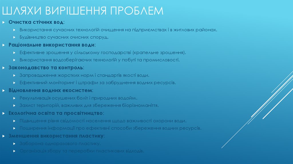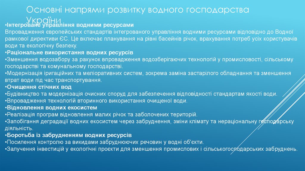 •Посилення контролю за викидами забруднюючих речовин у водні об'єкти.
