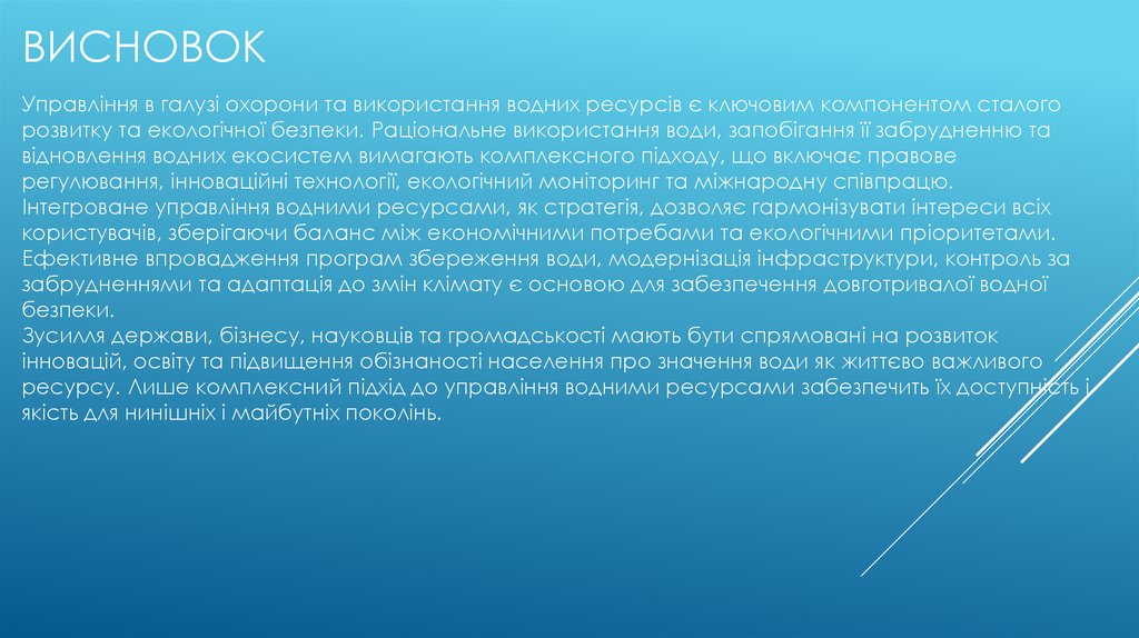 ВИСНОВОКУправління в галузі охорони та використання водних ресурсів є ключовим компонентом сталого