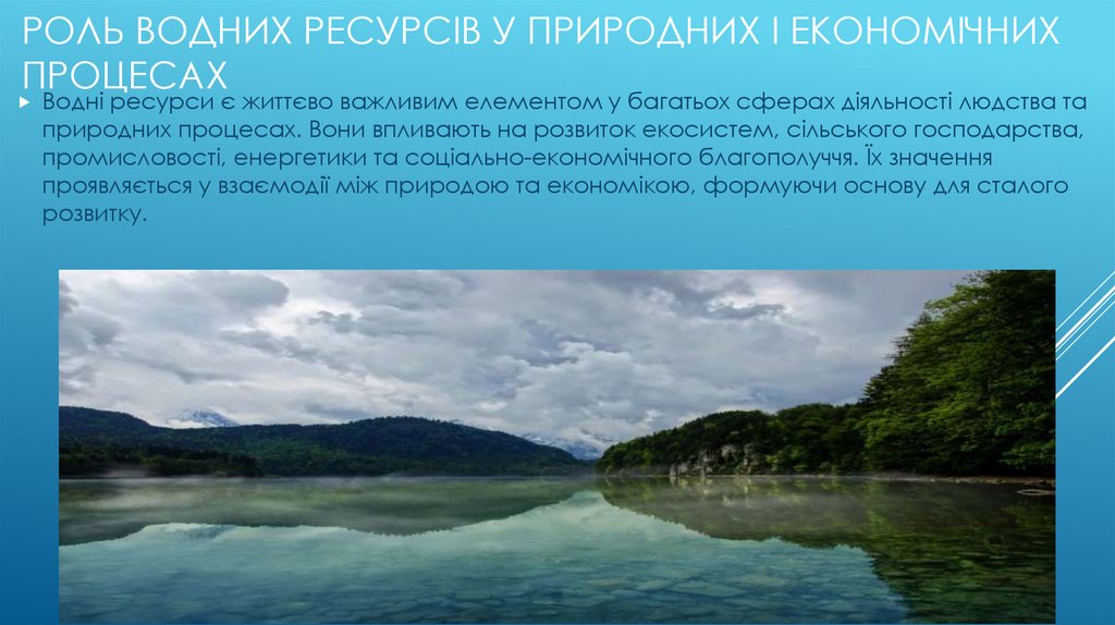 РОЛЬ ВОДНИХ РЕСУРСІВ У ПРИРОДНИХ І ЕКОНОМІЧНИХПРОЦЕСАХ