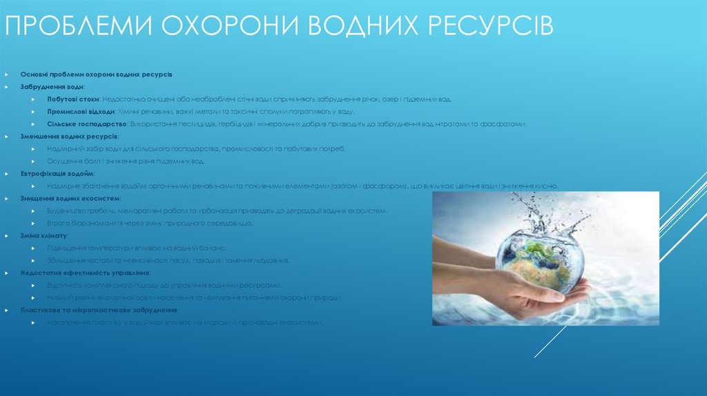 ПРОБЛЕМИ ОХОРОНИ ВОДНИХ РЕСУРСІВОсновні проблеми охорони водних ресурсів