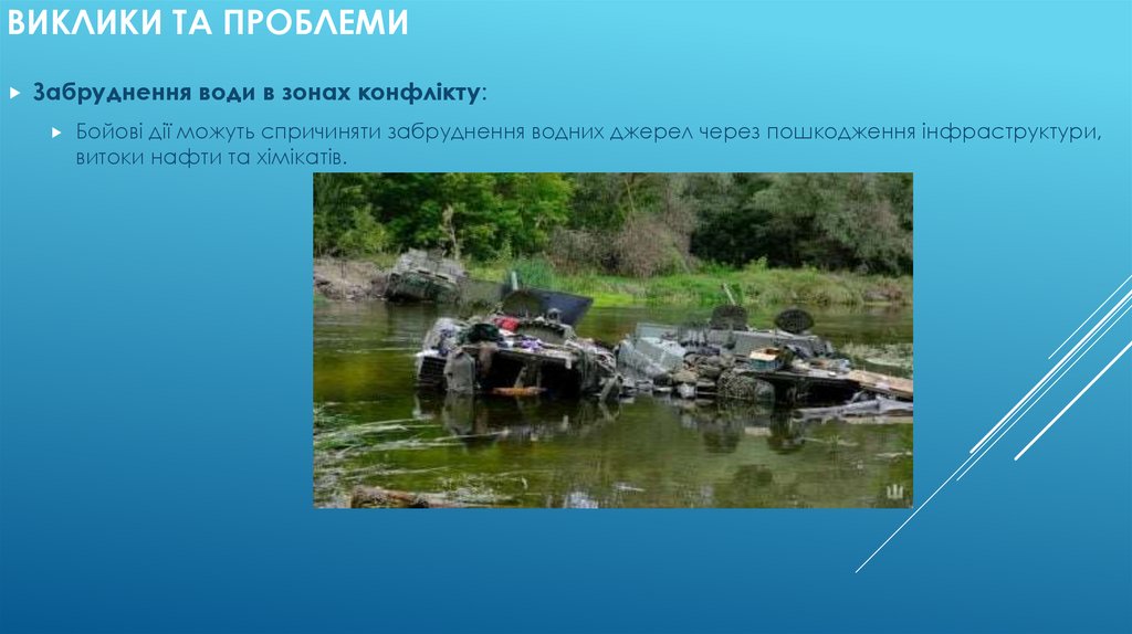 ВИКЛИКИ ТА ПРОБЛЕМИЗабруднення води в зонах конфлікту: