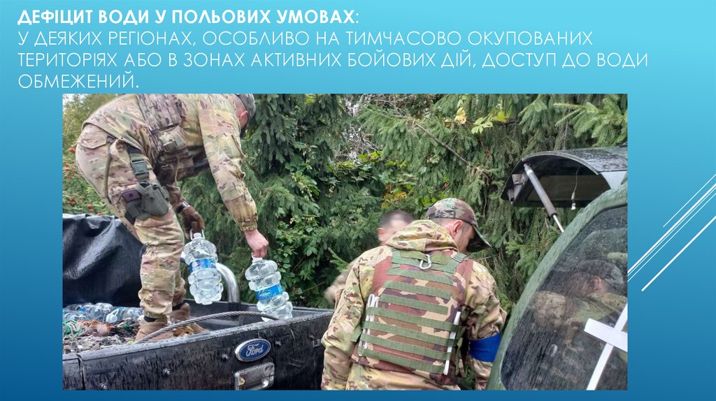 ДЕФІЦИТ ВОДИ У ПОЛЬОВИХ УМОВАХ:У ДЕЯКИХ РЕГІОНАХ, ОСОБЛИВО НА ТИМЧАСОВО ОКУПОВАНИХ