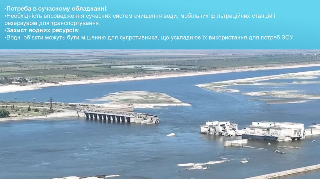 •Потреба в сучасному обладнанні:•Необхідність впровадження сучасних систем очищення води, мобільних фільтраційних станцій і