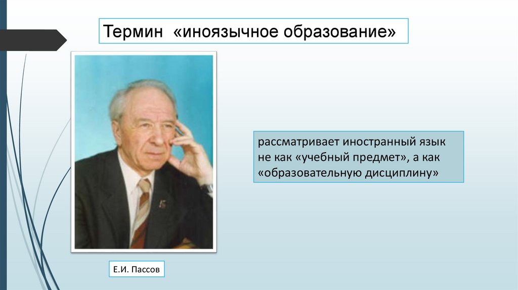 Термин «иноязычное образование»рассматривает иностранный язык