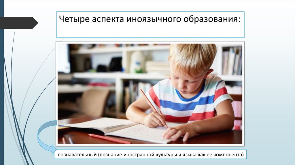 Четыре аспекта иноязычного образования:познавательный (познание иностранной культуры и языка как ее компонента)