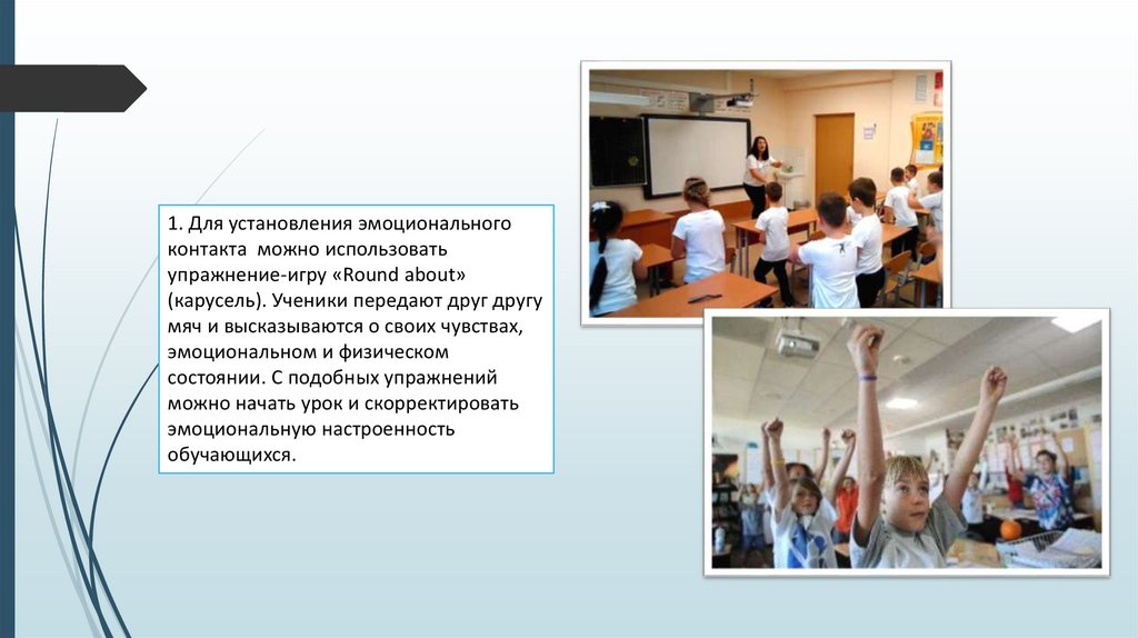 1. Для установления эмоциональногоконтакта можно использовать