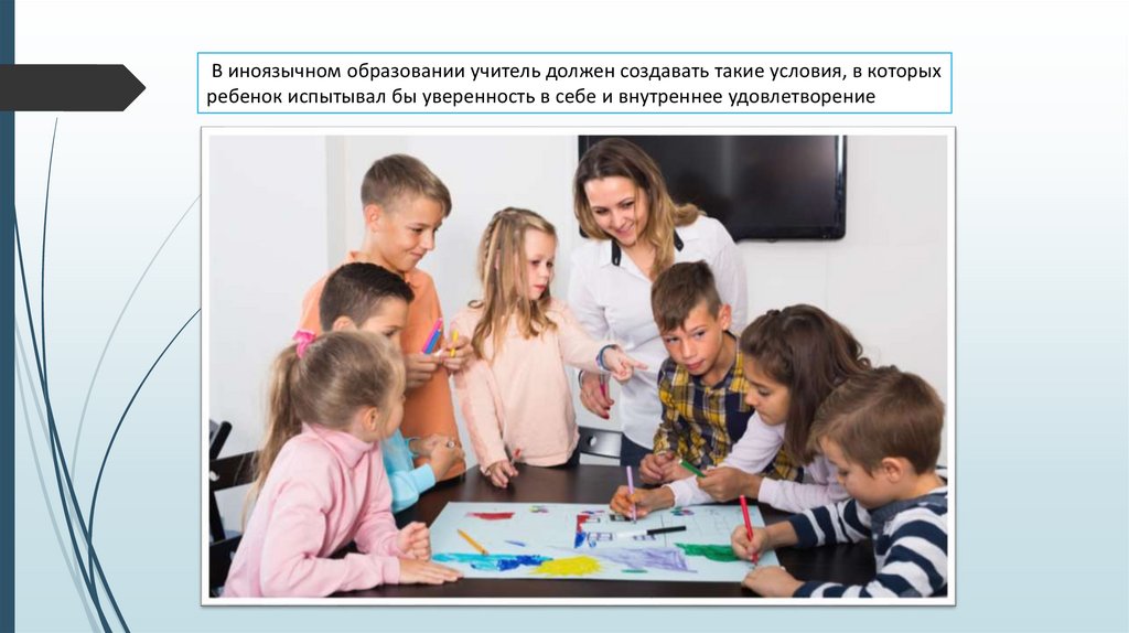 В иноязычном образовании учитель должен создавать такие условия, в которыхребенок испытывал бы уверенность в себе и внутреннее удовлетворение