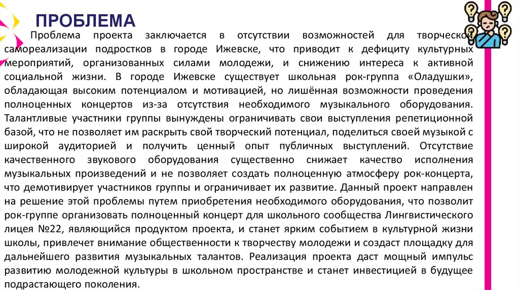 ПРОБЛЕМАПроблема проекта заключается в отсутствии возможностей для творческой