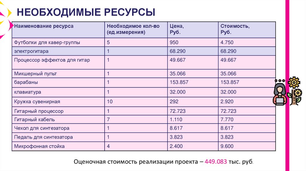 Оценочная стоимость реализации проекта – 449.083 тыс. руб.