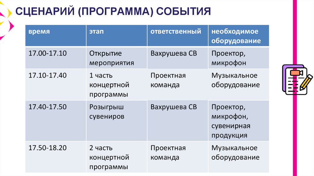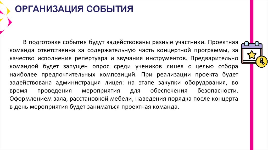 ОРГАНИЗАЦИЯ СОБЫТИЯВ подготовке события будут задействованы разные участники. Проектная