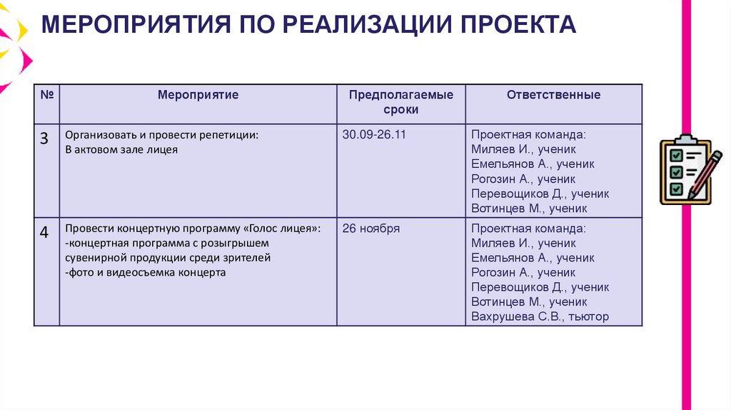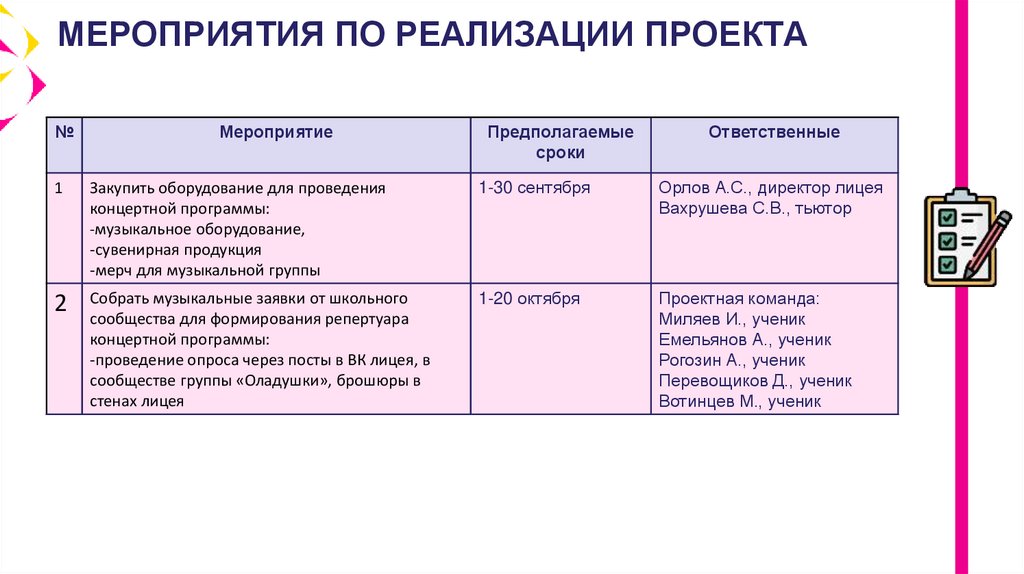 МЕРОПРИЯТИЯ ПО РЕАЛИЗАЦИИ ПРОЕКТА№