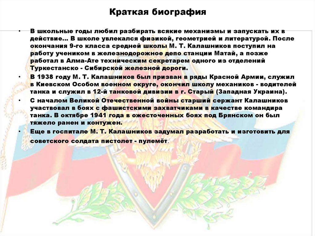 окончания 9-го класса средней школы М. Т. Калашников поступил на