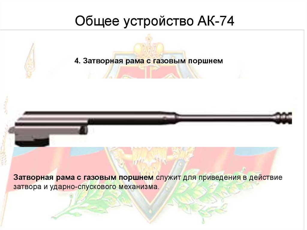 Общее устройство АК-744. Затворная рама с газовым поршнем