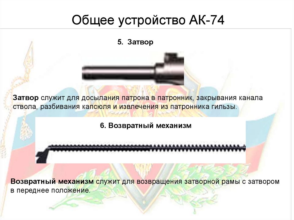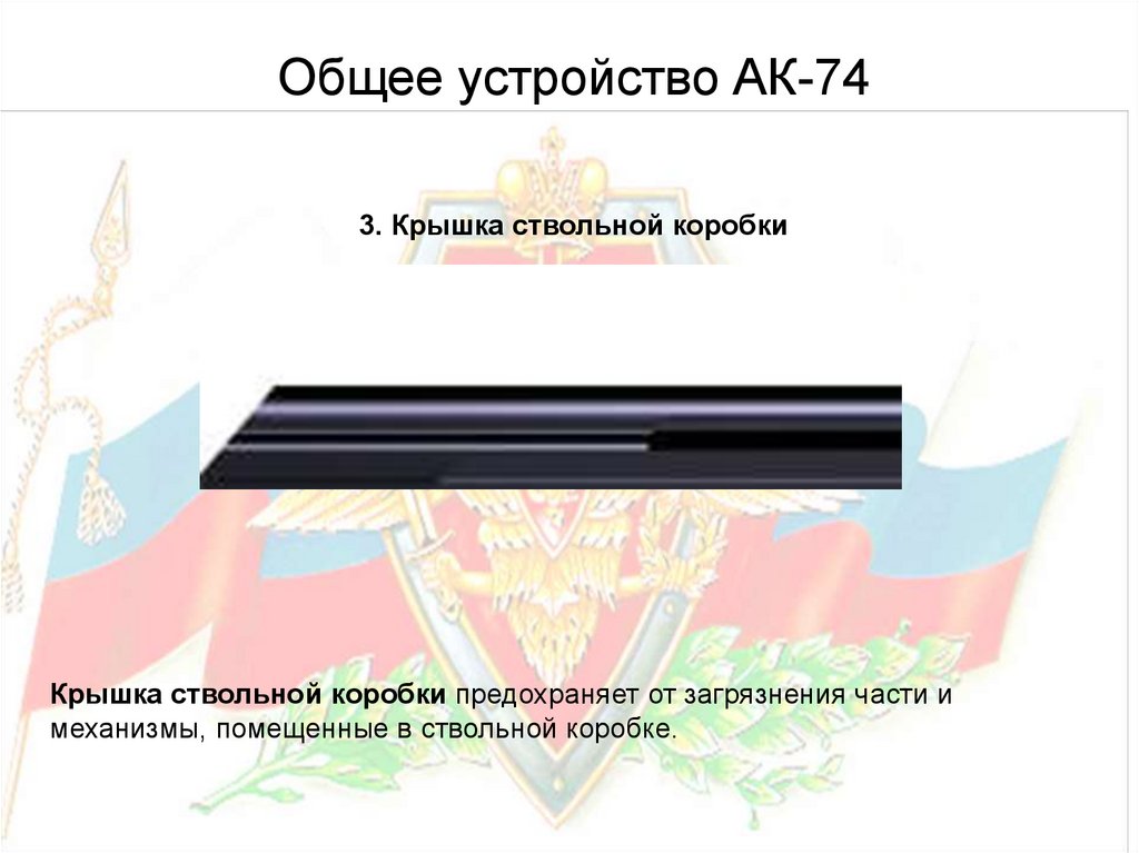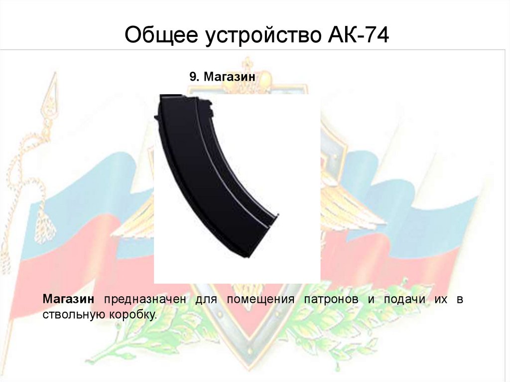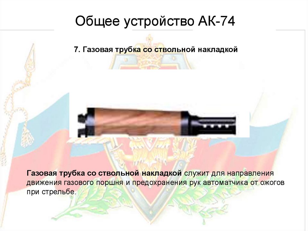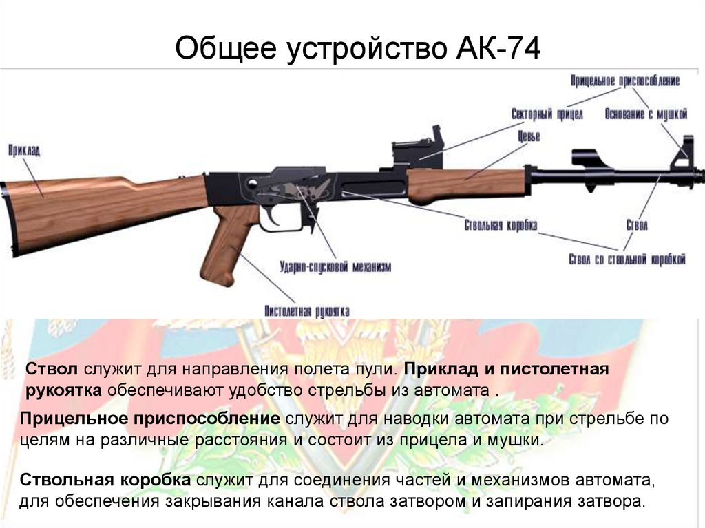 Общее устройство АК-74Ствол служит для направления полета пули. Приклад и пистолетная