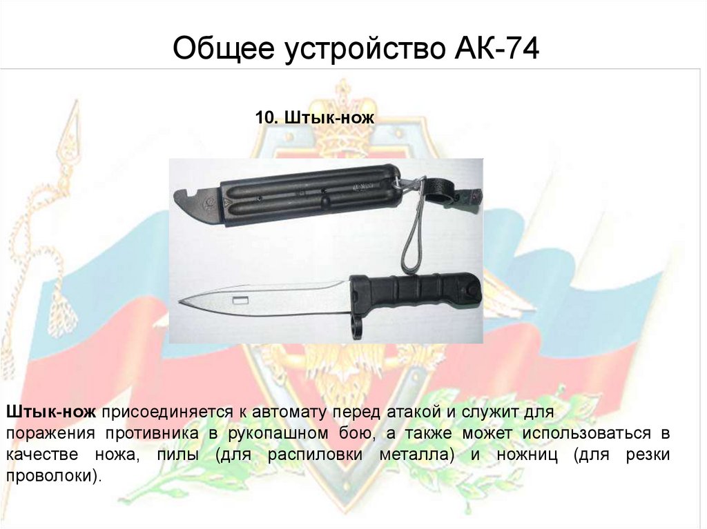 Общее устройство АК-7410. Штык-нож