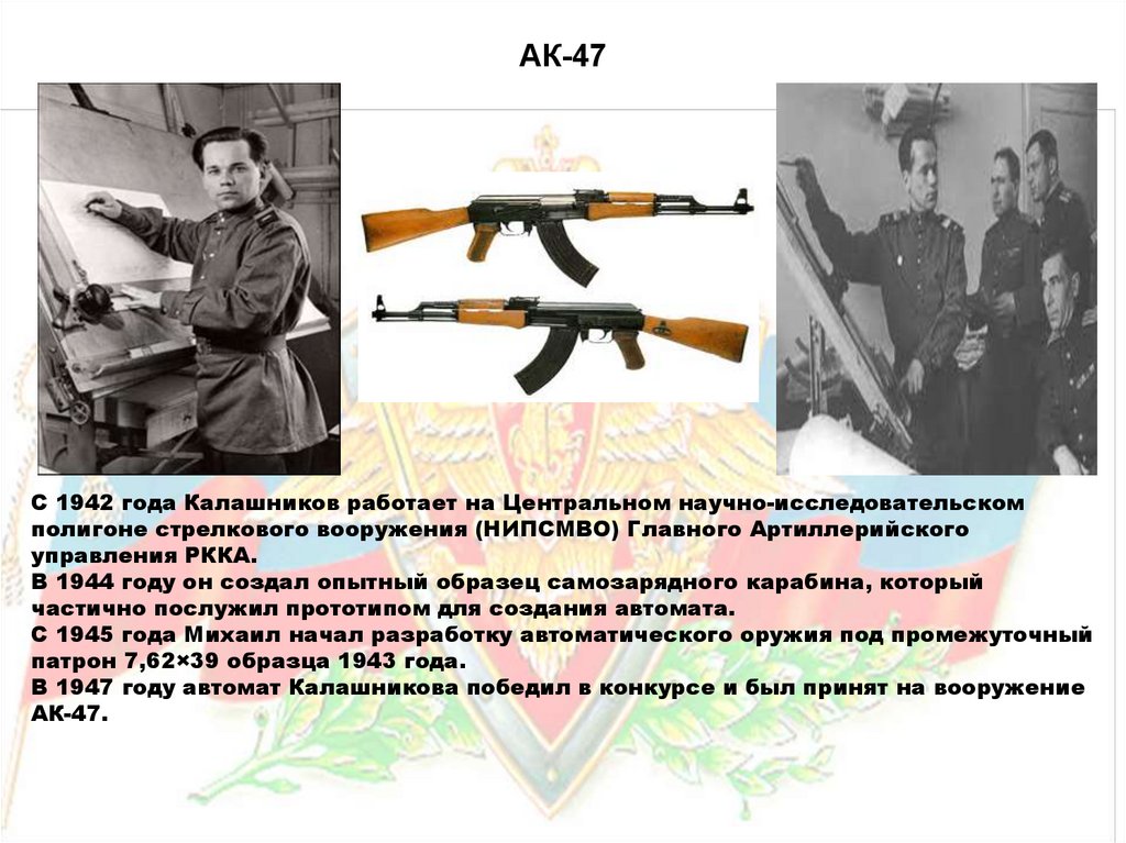 АК-47С 1942 года Калашников работает на Центральном научно-исследовательском