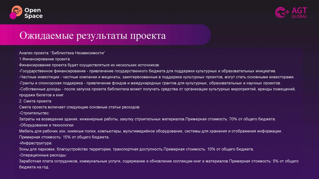 Ожидаемые результаты проектаАнализ проекта: “Библиотека Независимости”