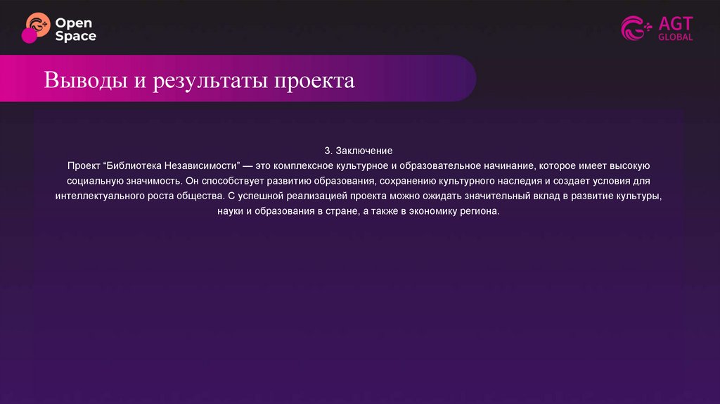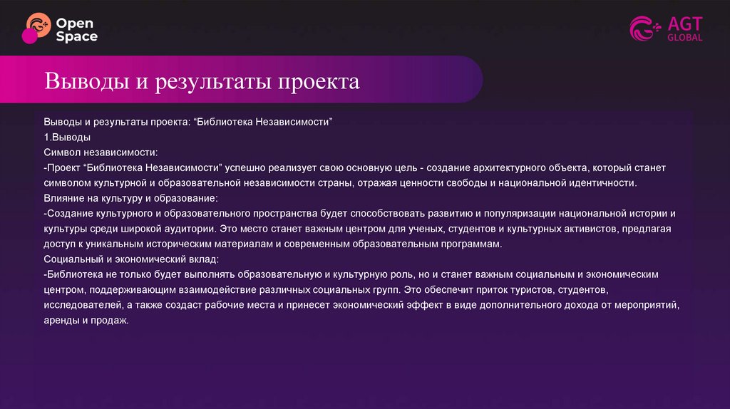 Выводы и результаты проектаВыводы и результаты проекта: “Библиотека Независимости”