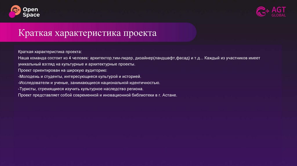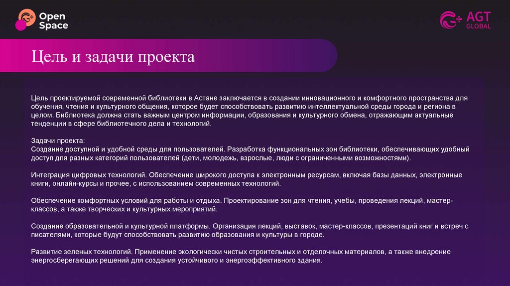 Цель и задачи проектаЦель проектируемой современной библиотеки в Астане заключается в создании инновационного и комфортного пространства для