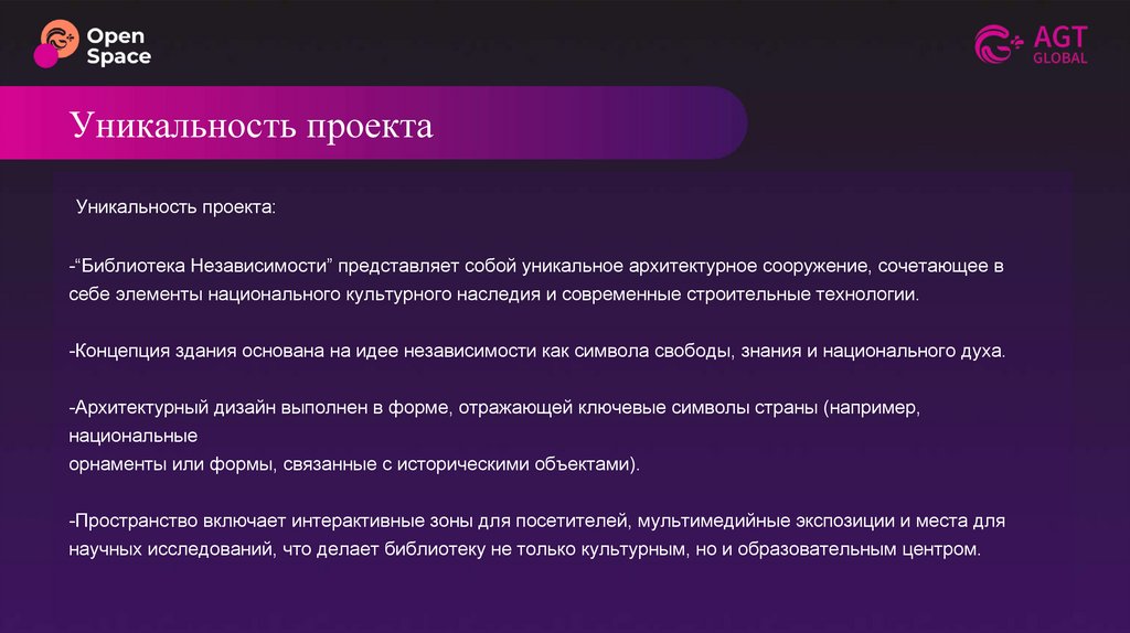 -Проект “Библиотека Независимости” успешно реализует свою основную цель - создание архитектурного объекта, который станет