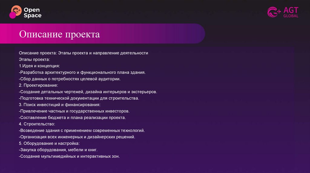Описание проектаОписание проекта: Этапы проекта и направление деятельности