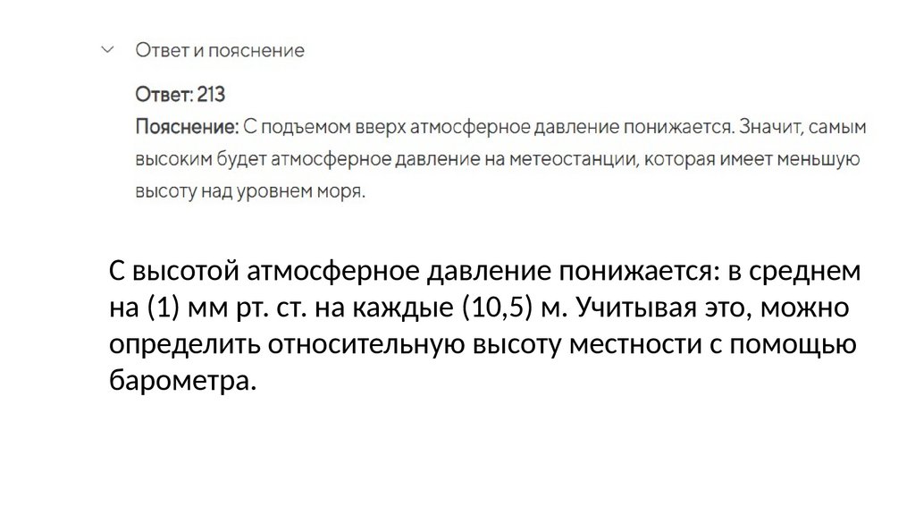 на (1) мм рт. ст. на каждые (10,5) м. Учитывая это, можно