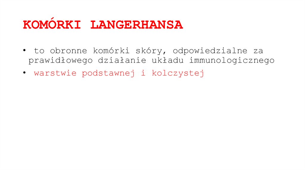 KOMÓRKI LANGERHANSA• to obronne komórki skóry, odpowiedzialne za