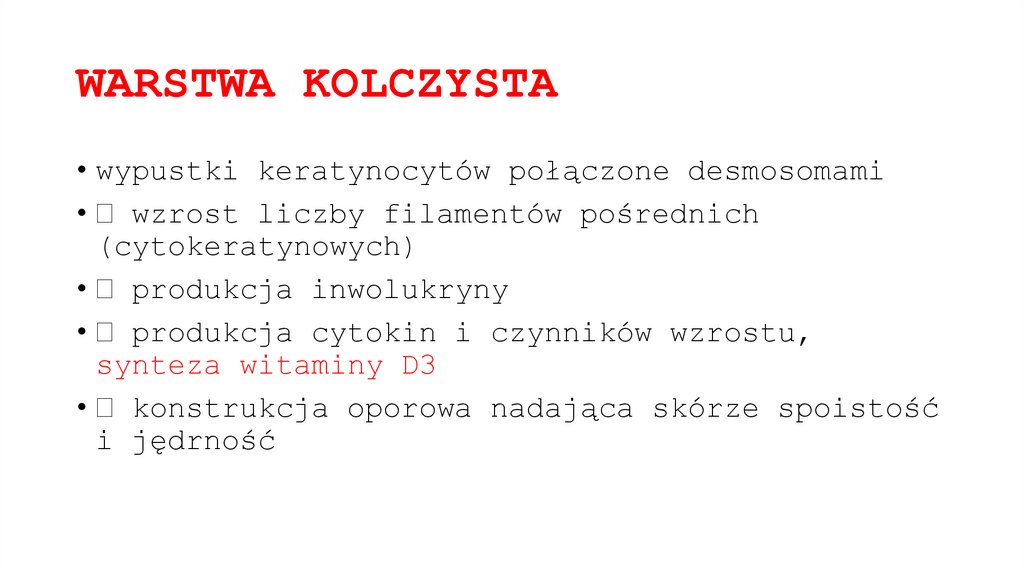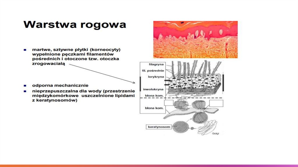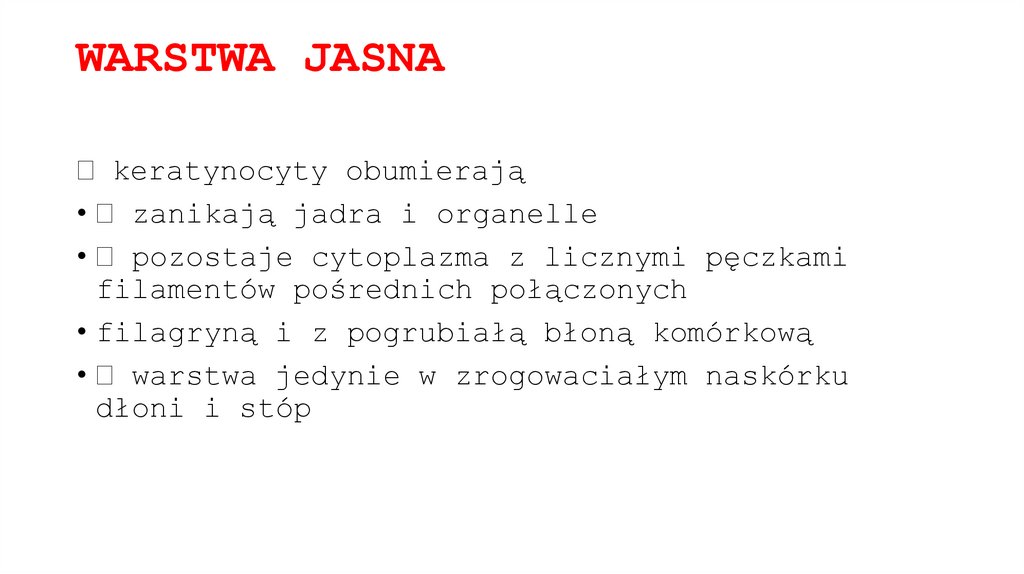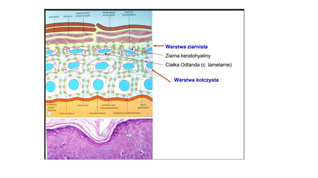 • ◼ warstwa jedynie w zrogowaciałym naskórku