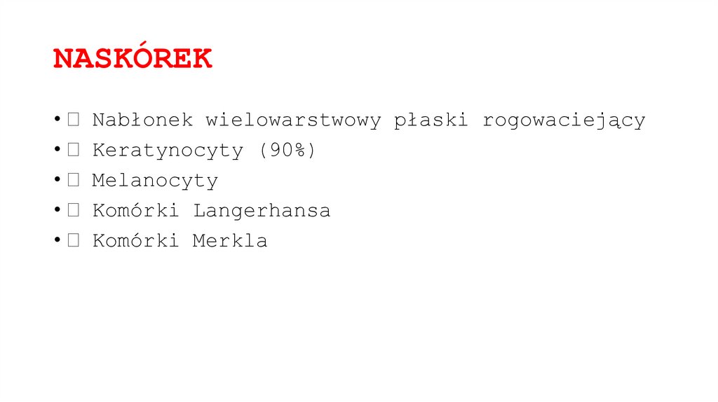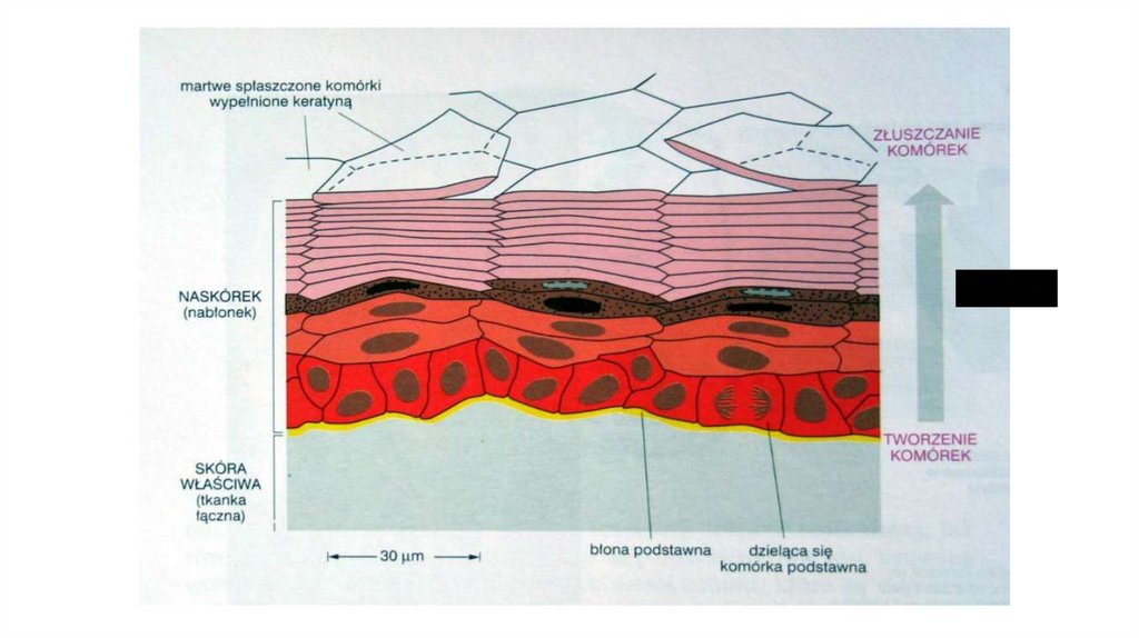 NASKÓREK• ◼ Nabłonek wielowarstwowy płaski rogowaciejący