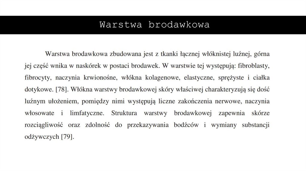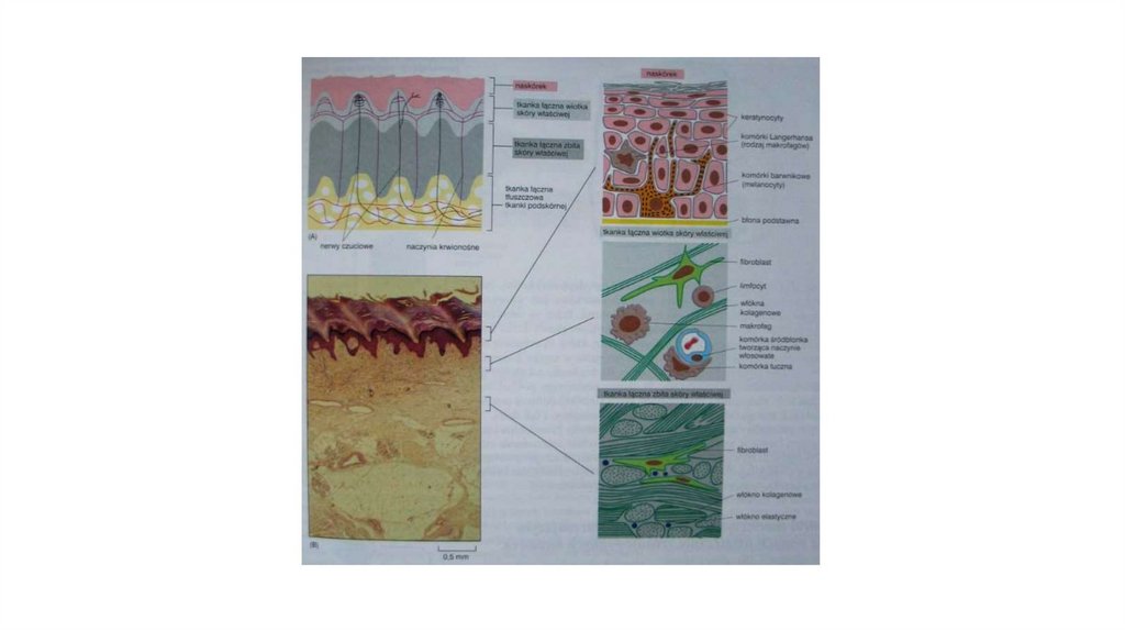 SKÓRA WŁAŚCIWA• warstwa brodawkowa- leżąca tuż pod naskórkiem