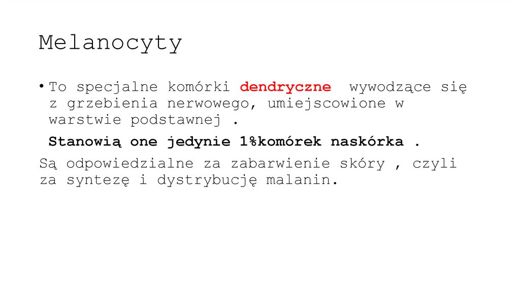 Melanocyty• To specjalne komórki dendryczne wywodzące się