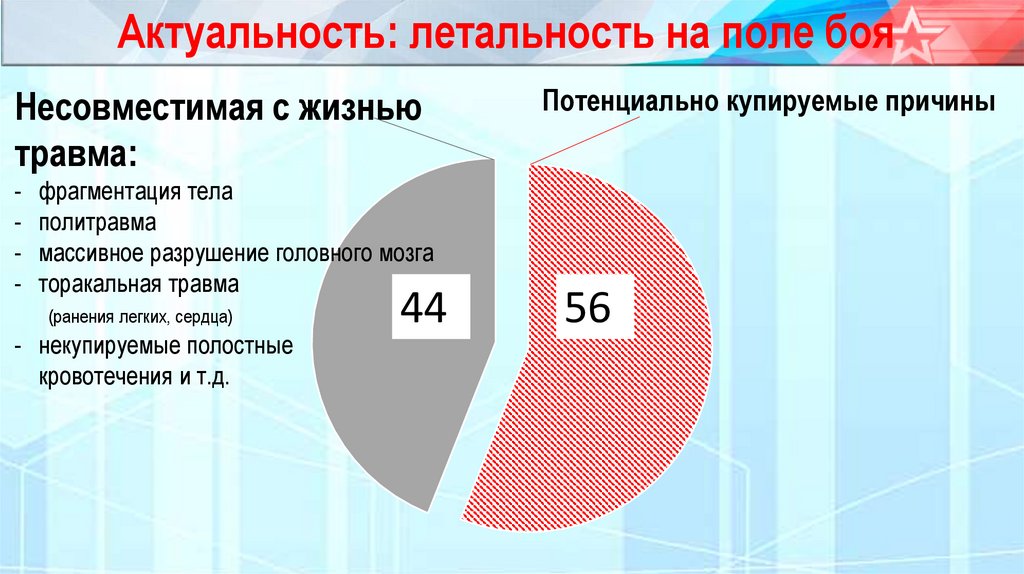 Актуальность: летальность на поле бояНесовместимая с жизнью