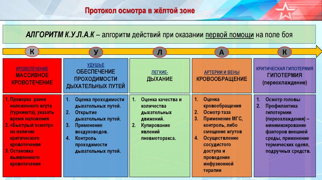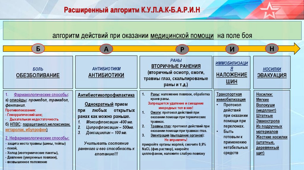 Расширенный алгоритм К.У.Л.А.К-Б.А.Р.И.Налгоритм действий при оказании медицинской помощи на поле боя