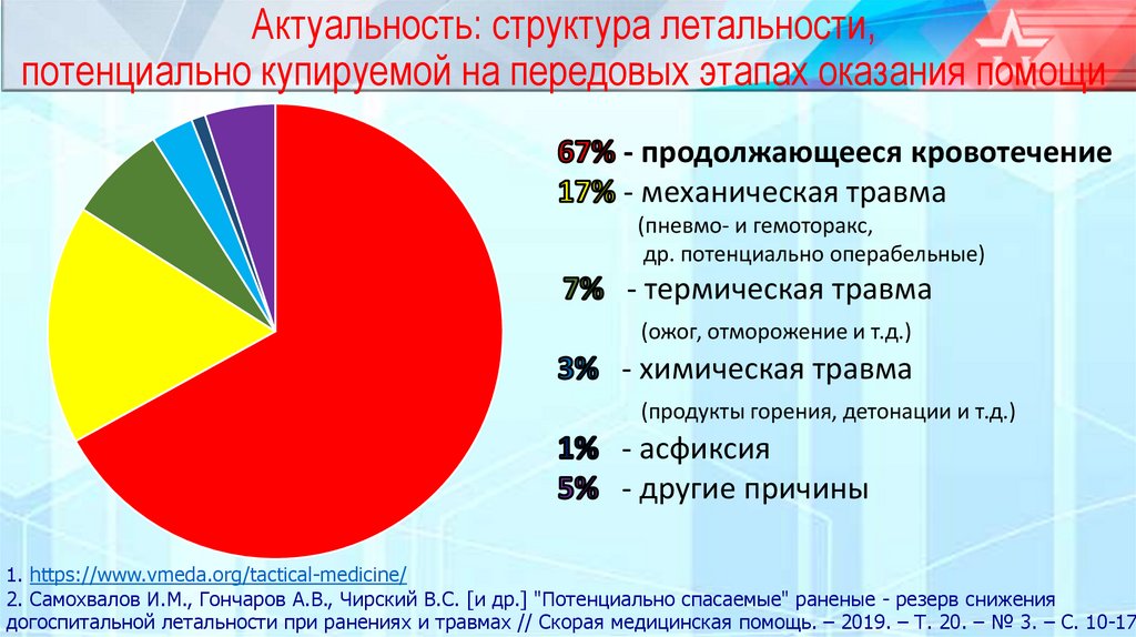 Актуальность: структура летальности,потенциально купируемой на передовых этапах оказания помощи