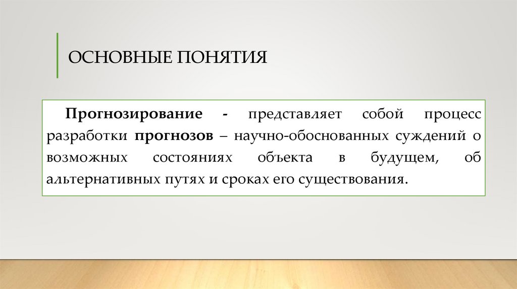 ОСНОВНЫЕ ПОНЯТИЯПрогнозирование - представляет собой процесс